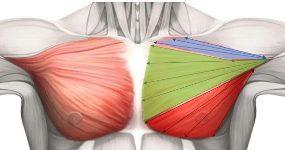 The chest muscle can be divided into three parts based on movement: